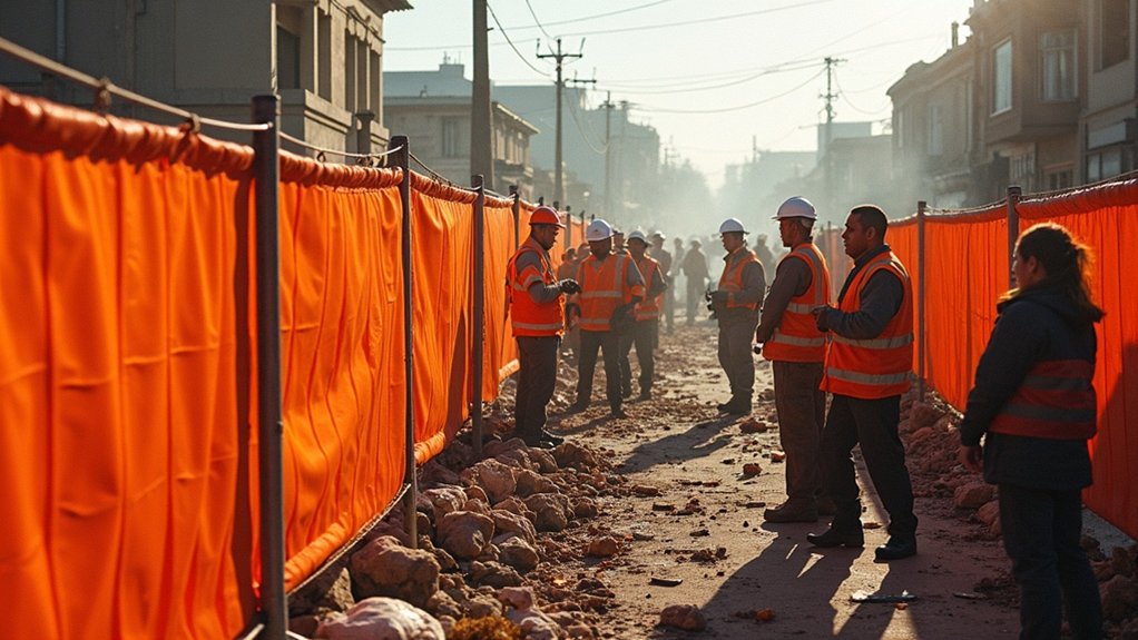 Managing temporary fencing during emergencies requires a solid grasp of regulatory requirements. You’ll need to navigate different regulations concerning safety, security, and environmental impact. This often involves obtaining permits that specify details like fence type, height, and location. Local authorities will conduct compliance inspections to ensure you meet these standards during installation. Keep in mind that permits may have limited durations, so you might need to renew them for extended projects. Consultation with local building department can provide essential guidance on specific regulations for your area. Zoning laws could also dictate where you can place fencing, often based on community aesthetics. Ensure your fencing complies with OSHA guidelines regarding height and materials, and consider environmental regulations to protect sensitive areas. Staying compliant not only reduces risks but also ensures your temporary fencing is safe and effective.