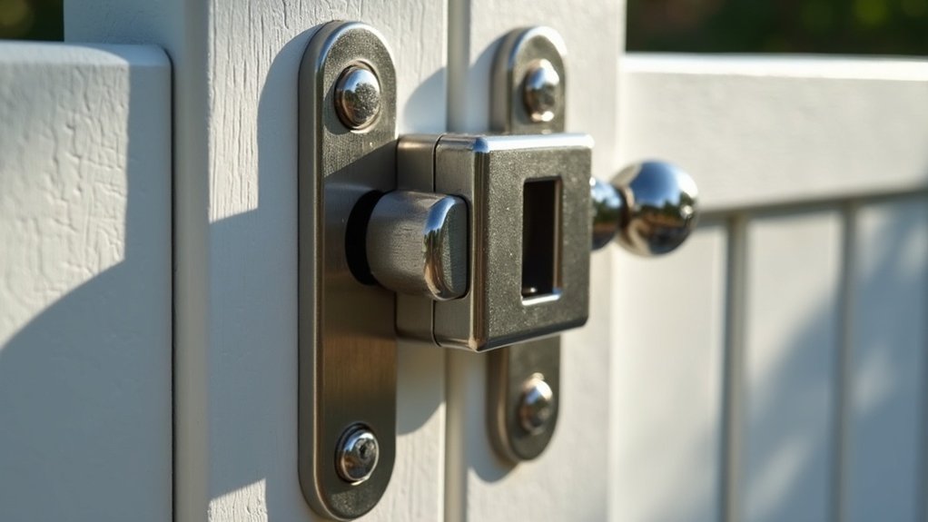 When securing your vinyl gate, choosing the right locking mechanism is key to preventing unauthorized access. Options like polymer locking latches provide keyed entry, while gravity latches can be secured with padlocks for extra protection.